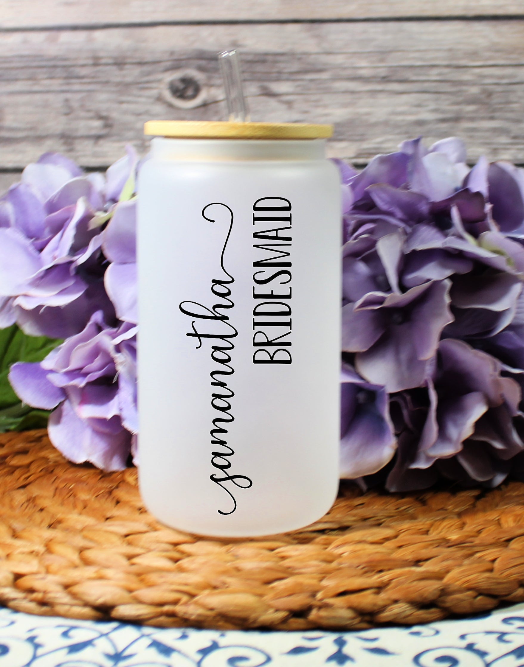 16 oz. Frosted Iced Coffee Cup , Personalized Bridal Party Gift, Bridesmaid Coffee Cup With Name