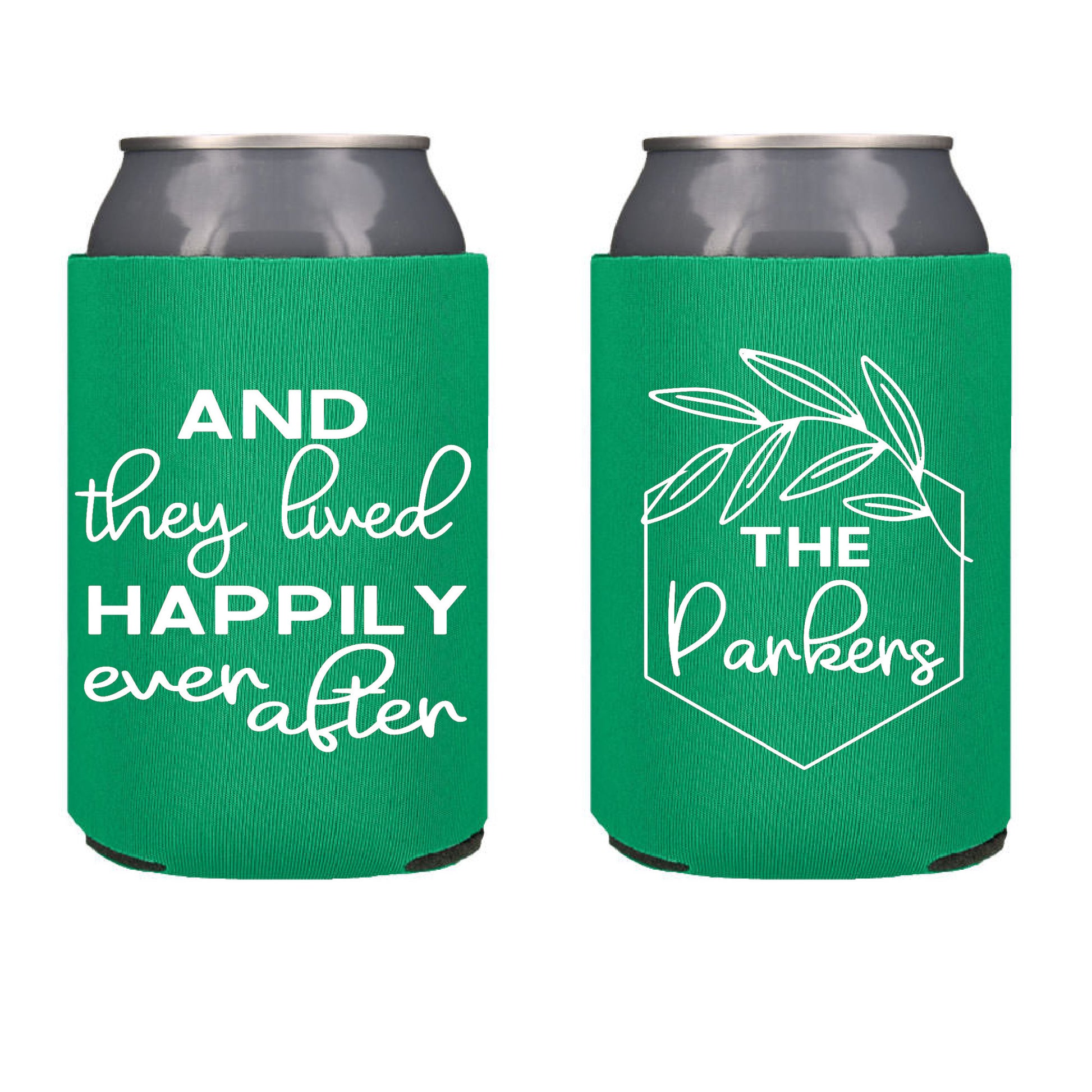 And They Lived Happily Ever After Wedding Favor Screen Printed Can Cooler Wedding Reception Favor