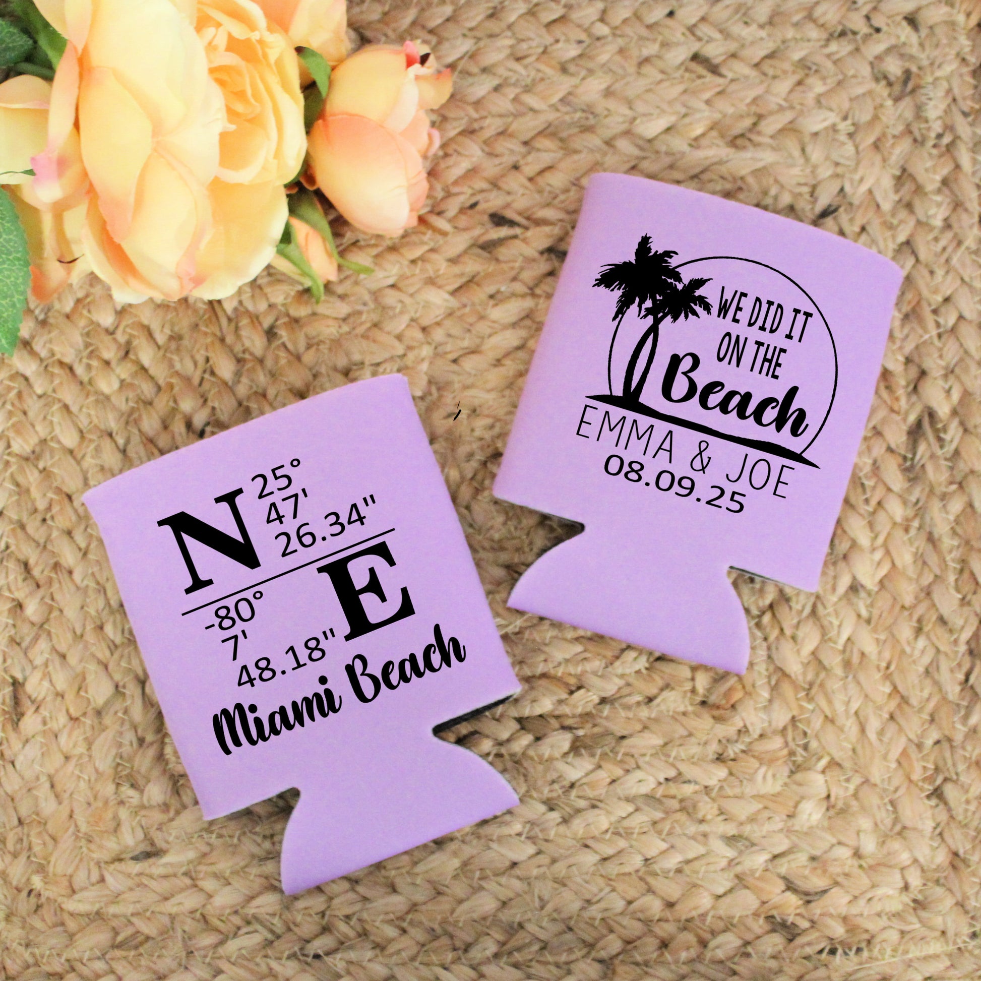 Coordinate Beach Wedding Reception Favors Regular Screen Printed Can Coolers