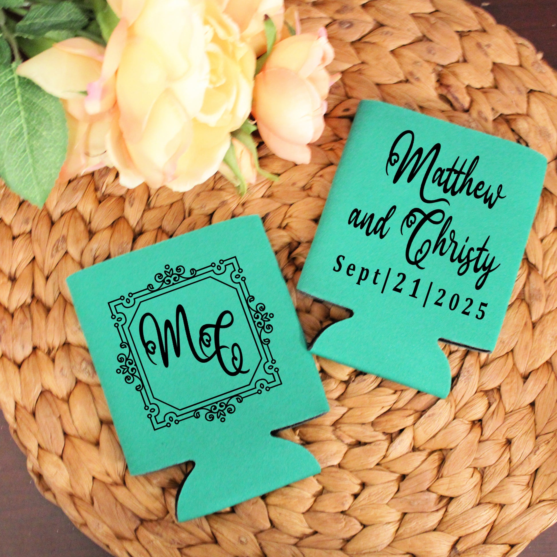 Looking for a unique wedding party favor?   These Wedding can coolers are a great choice for party favors.  They are personalized for your event.  These Can Insulators will help keep your guests drinks cold.  These will be used for years and will make your event one to be remembered.