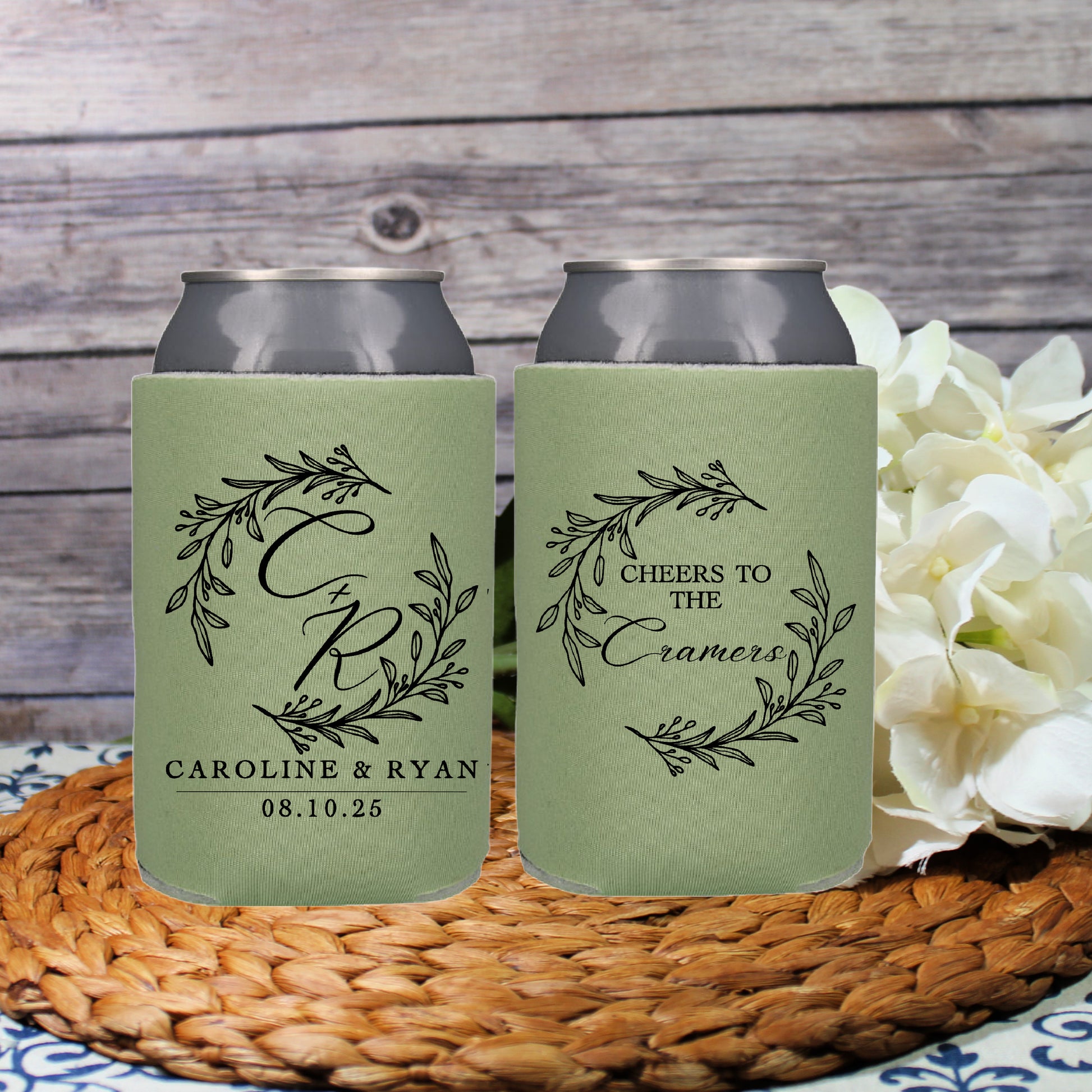 Monogram Minimalist Wedding Favor Screen Printed Can Cooler