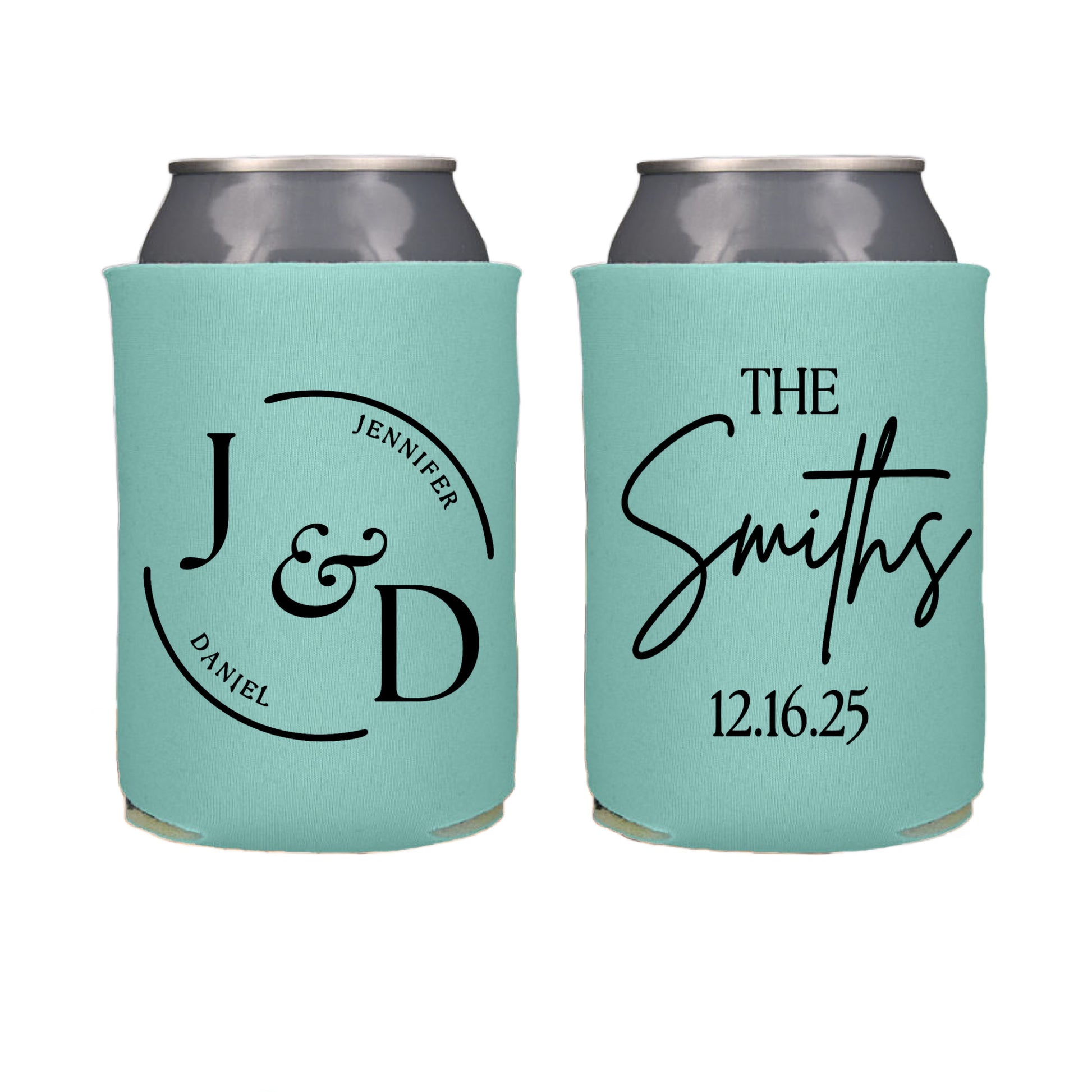 Monogram Minimalist Wedding Favor Screen Printed Can Cooler
