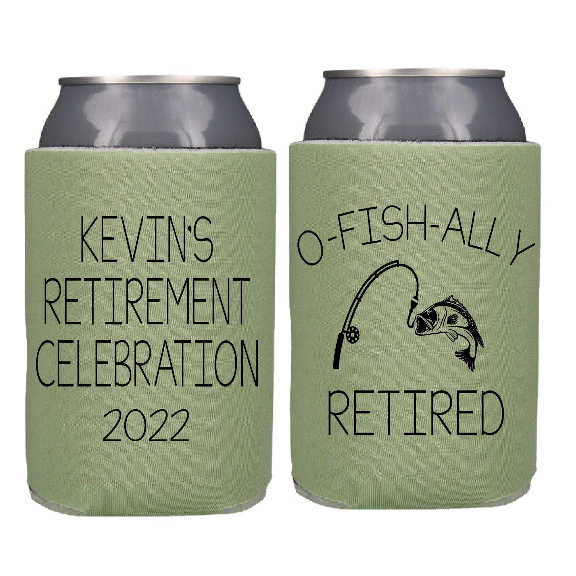 O-Fish-Ally Retired Screen printed Can Cooler Retirement Party Favor