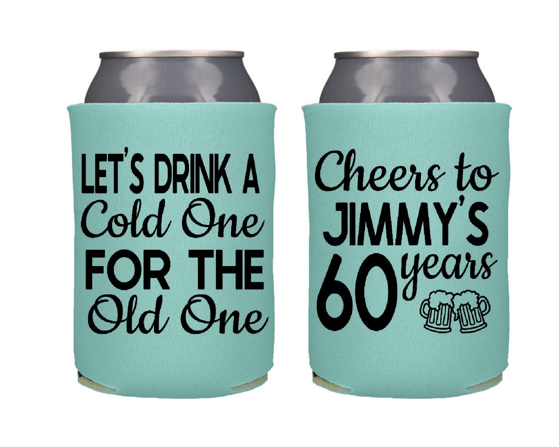 Let's Drink a Cold One For the Old One Birthday Party Favor Screen Printed Can Cooler