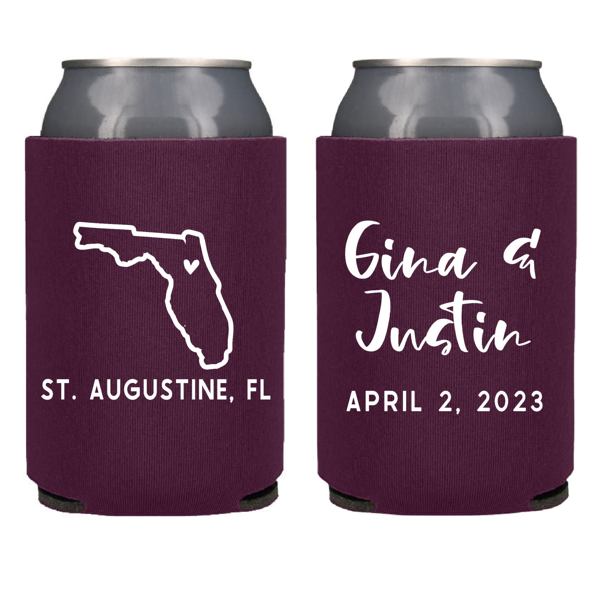 Looking for a unique wedding party favor? These State Of Love can coolers are a great choice for party favors. They are personalized for your event. These Can Insulators will help keep your guests drinks cold. These will be used for years and will make your event one to be remembered.