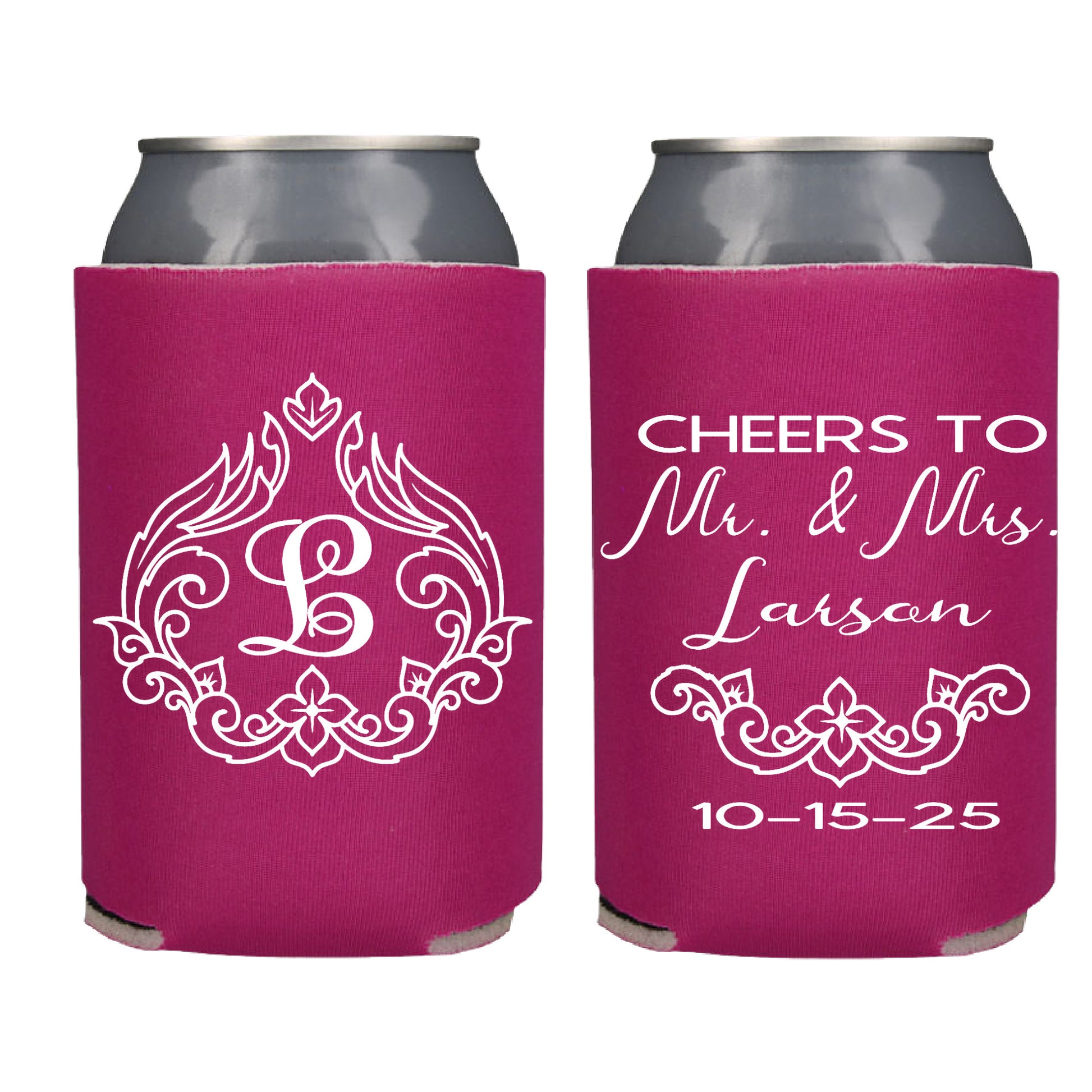 Vintage Wedding Favor Monogram Screen Printed Can Cooler